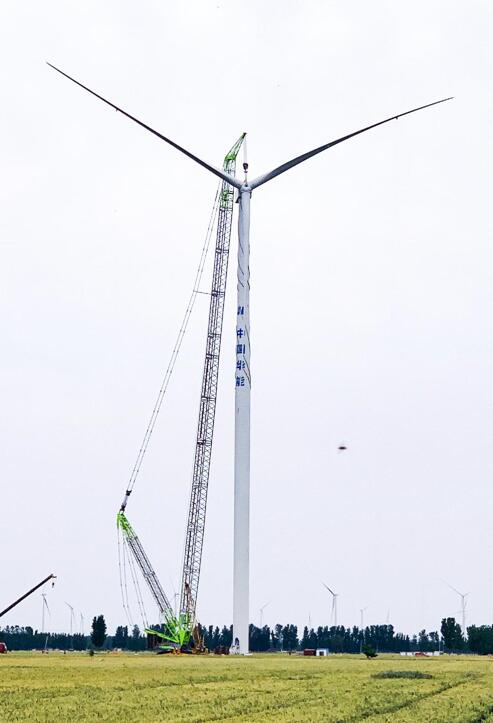 5月24日下午,隨著河南濮陽風(fēng)電場3號風(fēng)機葉輪組件吊裝就位,標(biāo)志著由中國能建浙江火電承擔(dān)安裝的濮陽500兆瓦風(fēng)電工程東北片區(qū)和西北片區(qū)共66臺風(fēng)機全部吊裝完成。