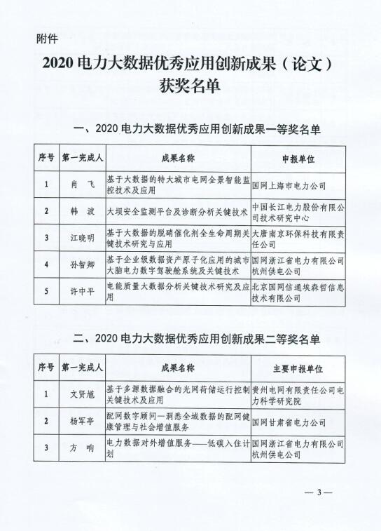 附件:2020電力大數(shù)據(jù)優(yōu)秀應(yīng)用創(chuàng)新成果(論文)獲獎(jiǎng)名單