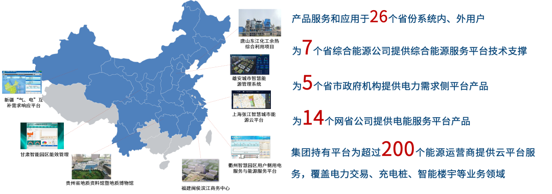 目前,相關(guān)產(chǎn)品及解決方案已在26個(gè)省市全面開花,獲得4項(xiàng)省部級(jí)獎(jiǎng)勵(lì),成功打造了雄安新區(qū)市民服務(wù)中心智慧能源管控系統(tǒng)、上海張江科學(xué)城智慧城市能源云平臺(tái)、天津城市能源互聯(lián)網(wǎng)平臺(tái)、國(guó)家電網(wǎng)公司南北客服中心綜合能源工程、青島智能家居產(chǎn)業(yè)園綜合能源服務(wù)、新疆“氣、電”互補(bǔ)需求響應(yīng)平臺(tái)、云南能投充電服務(wù)平臺(tái)等多項(xiàng)優(yōu)質(zhì)項(xiàng)目。