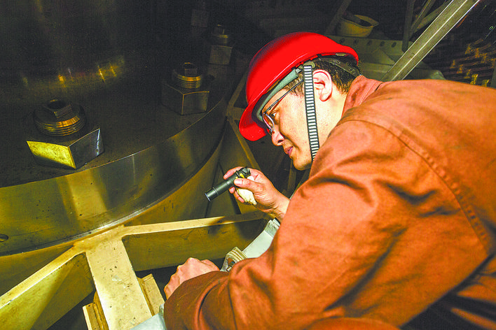 5月28日,國網(wǎng)新源天荒坪抽水蓄能電站地下廠房內(nèi),迎峰度夏前最后一臺(tái)機(jī)組大修的驗(yàn)收工作正在開展,十幾位檢修人員熱火朝天地忙碌著。人群中,一位戴著眼鏡的師傅正與檢修人員討論:“還有幾天電站就要進(jìn)入迎峰度夏的運(yùn)行模式了。大家不要掉以輕心。檢修完成后,我們還要對(duì)機(jī)組進(jìn)行三級(jí)驗(yàn)收工作,做最后的確認(rèn)。”他是機(jī)組各級(jí)檢修最后一道驗(yàn)收關(guān)口的把關(guān)人、國網(wǎng)新源天荒坪抽水蓄能電站運(yùn)檢部水機(jī)專業(yè)管理曾輝。