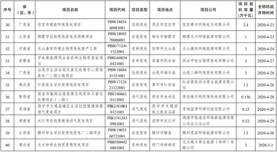 關(guān)于公布2020年生物質(zhì)發(fā)電中央補(bǔ)貼項目申報結(jié)果的通知