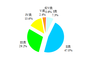 1940個(gè)國家地表水考核斷面中,水質(zhì)優(yōu)良(Ⅰ~Ⅲ類)斷面比例為83.4%,同比上升8.5個(gè)百分點(diǎn);劣Ⅴ類為0.6%,同比下降2.8個(gè)百分點(diǎn)。主要污染指標(biāo)為化學(xué)需氧量、總磷和高錳酸鹽指數(shù)。