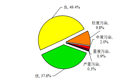 全國337個(gè)地級及以上城市平均優(yōu)良天數(shù)比例為87.0%,同比上升5.0個(gè)百分點(diǎn)。202個(gè)城市環(huán)境空氣質(zhì)量達(dá)標(biāo),占全部地級及以上城市數(shù)的59.9%,同比增加45個(gè)。PM2.5年均濃度為33微克/立方米,同比下降8.3%;PM10年均濃度為56微克/立方米,同比下降11.1%。