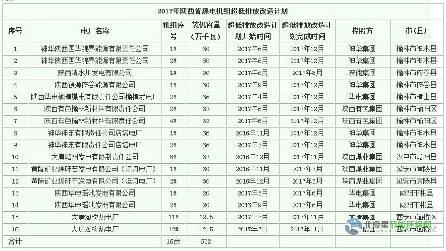 附件:2017年陜西省煤電機組超低排放改造計劃