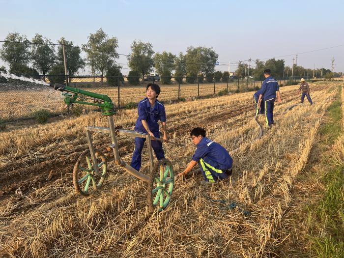 風電河南區(qū)域公司員工協(xié)助河南省尉氏縣多個村莊村民對農(nóng)田里的農(nóng)作物進行澆灌