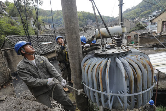 中國電力網(wǎng)訊 11月4日一大早,在浙江寧波鄞州區(qū)塘溪鎮(zhèn)東山村,三輛電力工程車正載著二十余名工作人員沿著山路蜿蜒而上,當天,他們的工作任務是拆除大嵩片區(qū)內(nèi)最后一臺屋頂變壓器。