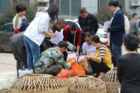 “這袋香米我要了,不要和我搶”,香米種植戶盧大哥的一袋袋大米還未從車上卸完,就被大家搶著訂購一空;“這筐香姜我要了,大爺快幫我裝袋稱重吧”,賣姜的陳大爺忙得不亦樂乎;“這只雞公好,我要了”···上午九時,隨著該公司活動指揮人員宣布現(xiàn)場購銷活動正式開始,大家爭先恐后的圍到早早看中的農產(chǎn)品攤前開始“搶購”,根本等不及農戶們好好宣傳自己家的產(chǎn)品,一樣樣、一袋袋農產(chǎn)品被熱情的采購者們“收入囊中”。現(xiàn)場采購活動開始一個小時不到,農戶們帶來的10多樣價值約3萬元的農產(chǎn)品就銷售一空,同時,還接受了預購訂單5000余元。
