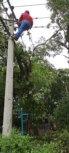 中國電力網(wǎng)訊 5月15日17時(shí)32分,雷暴天氣造成廣西富川縣朝東鎮(zhèn)、城北兩個(gè)鎮(zhèn)10千伏民主線等3條線路受損停電。接到了故障緊急搶修電話后,南方電網(wǎng)廣西新電力集團(tuán)富川縣公司朝東供電營業(yè)所分成兩個(gè)搶修小組趕赴故障現(xiàn)場開展搶修工作。搶修人員通過巡查確定了故障點(diǎn)并立即開展搶修。在故障搶修現(xiàn)場,趁著雨量減小的有利時(shí)機(jī),在確保安全的前提下,搶修人員分工合作,有條不紊的開展著搶修工作,有的人員將倒在線路上的樹木運(yùn)離現(xiàn)場,有的人員登桿作業(yè)接線換瓷瓶。通過大家的共同努力,于5月16日晚20時(shí)46分完成搶修任務(wù),恢復(fù)了近5000個(gè)用電戶供電,以實(shí)際行動(dòng)踐行了“人民電業(yè)為人民”的宗旨。
