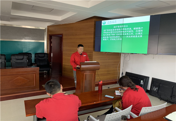 隨后,分局二級(jí)工程師劉福軍為大家?guī)?lái)了以“配電網(wǎng)架空線路檢修及驗(yàn)收”為主題的生產(chǎn)技術(shù)課程,他主要對(duì)線路桿塔各項(xiàng)設(shè)備參數(shù)、具體安裝位置、安裝規(guī)范等技術(shù)問(wèn)題進(jìn)行講解,同時(shí)針對(duì)學(xué)員提出的種種問(wèn)題,進(jìn)行了詳細(xì)的解答,使全體青工對(duì)線路檢修及驗(yàn)收有了更深入地了解。緊接著,由分局用電檢查班青工郭介愚為大家講解了以“業(yè)擴(kuò)報(bào)裝”為主題的用電營(yíng)銷課程,他通過(guò)PPT結(jié)合實(shí)際案例的方式,深入淺出的講解了業(yè)擴(kuò)報(bào)裝具體流程及低壓供電方案的編寫(xiě),使分局青工營(yíng)銷業(yè)務(wù)能力有所提升。