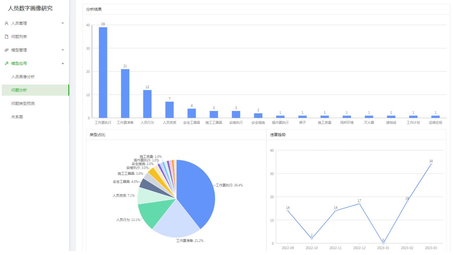 “人員數(shù)字畫像系統(tǒng)建模就是將作業(yè)人員信息的標(biāo)簽化,通過搭建智能計(jì)算評價(jià)系統(tǒng),自動(dòng)提取歷史違章數(shù)據(jù)進(jìn)行分析計(jì)算,能夠全面細(xì)致地展現(xiàn)作業(yè)人員的信息全貌,并提出針對性培訓(xùn)建議,還可以從違章單位、類別以及頻次等多維度以圖表展示數(shù)據(jù)分析結(jié)果,大大解放了以往人工歸類統(tǒng)計(jì)分析的勞動(dòng)力。”余姚市宏宇輸變電工程公司安監(jiān)部項(xiàng)目負(fù)責(zé)人介紹該系統(tǒng)時(shí)津津樂道。