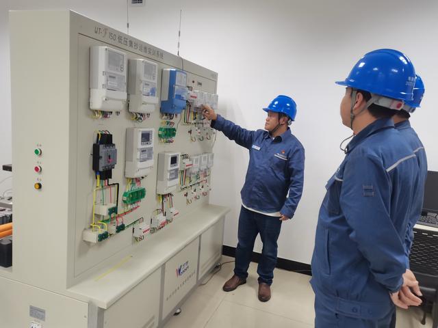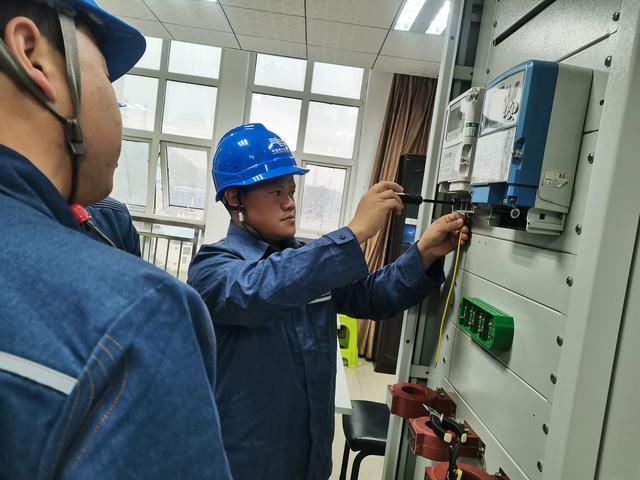他總結出裝表接電“七步法”:第一步,安裝就位。將電能表、負荷管理終端、電流互感器、聯(lián)合接線盒等設備安裝就位,布置原則是電能表與聯(lián)合接線盒之間的垂直距離為15厘米,互感器之間的水平距離為15厘米。第二步,下料。根據互感器、聯(lián)合接線盒、電能表、負荷管理終端之間的距離按照黃、綠、紅、黑的相色對線材下料,并留有一定的裕度。第三步,綁扎。這一過程中嚴禁出現(xiàn)交叉。捆扎導線時,對應的3根黃、綠、紅導線和1根黑導線按照3-4-3的位置排列,即黃、紅兩色在外層,綠、黑兩色在內層,黑色靠外。第四步,走向。各個彎折點用扎帶捆扎,對齊后按預留8-10mm的長度剪齊。第五步,接入接線盒。將線頭按1.5-2mm的長度剝去絕緣層,套上號頭后與接線盒連接,擰緊螺絲。第六步,接互感器。線圈的做法,將導線折彎90度,用尖嘴鉗彎成半圓,再換一下手彎成圓形。線圈以順時鐘鉗入。第七步,按照接線盒到電能表和負荷管理終端之間的距離依次分色拆線接入。