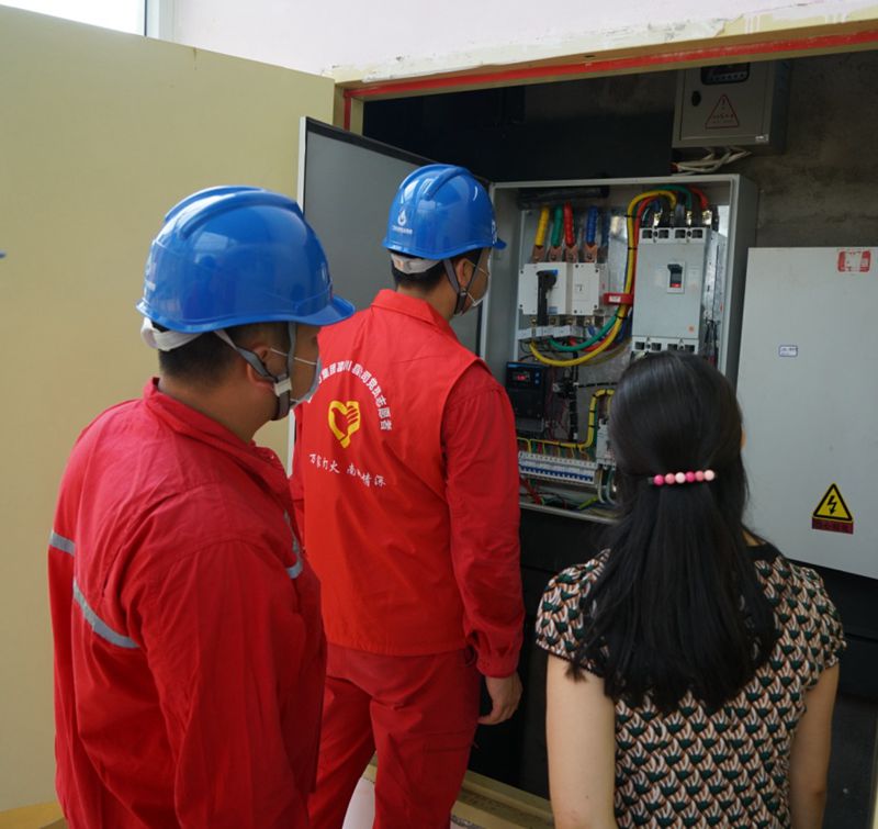 在富川縣第一幼兒園,富川縣公司的志愿者們分工合作,對幼兒園教室、操場等公共區(qū)域進行清潔打掃和消毒。當對幼兒園內用電設備逐一檢查測試時發(fā)現(xiàn)控制B棟教室的空調總開關處導線已經燒焦,隨時會發(fā)生斷線停電故障,檢查人員立刻向幼兒園反饋并為其排除用電隱患,受到幼兒園老師們的感謝和點贊。