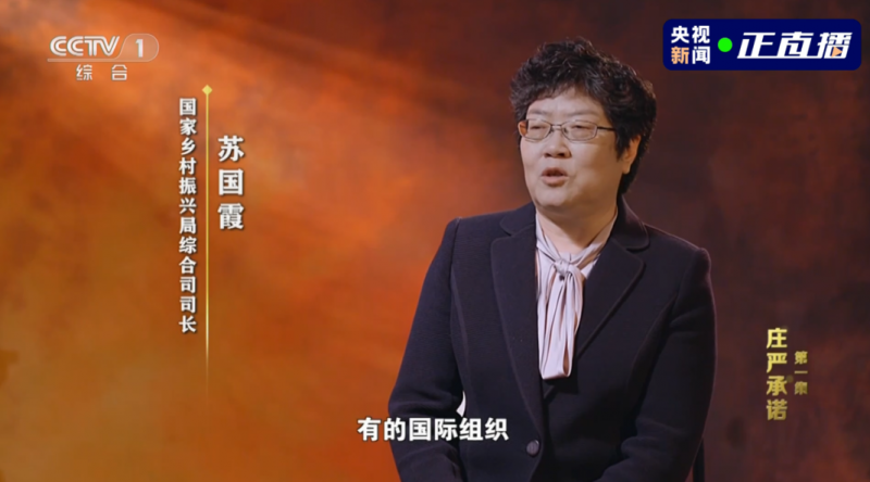 在第一集中,劉永富出鏡接受采訪,他的身份是“原國務(wù)院扶貧辦主任”。此前擔(dān)任國務(wù)院扶貧辦綜合司司長的蘇國霞,則以“國家鄉(xiāng)村振興局綜合司司長”的身份出鏡。
