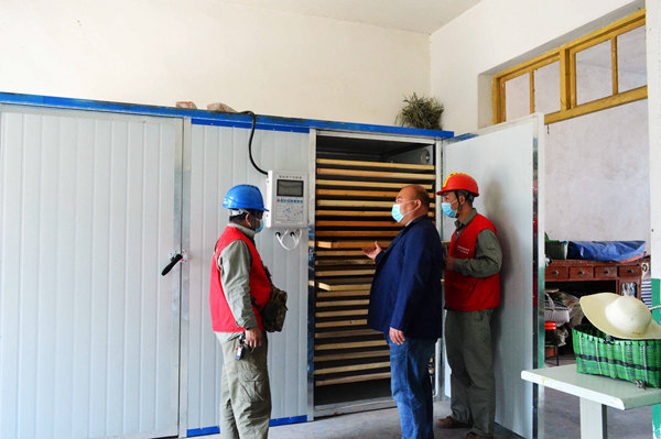 “齊書記,3個接電工作日正趕上五一長假,我們怕廠家調試烘干設備時間緊影響生產,就提前來了。”施工當天,黃永亮一邊和服務隊員做好施工前的防疫消殺工作,一邊向齊志強解釋。