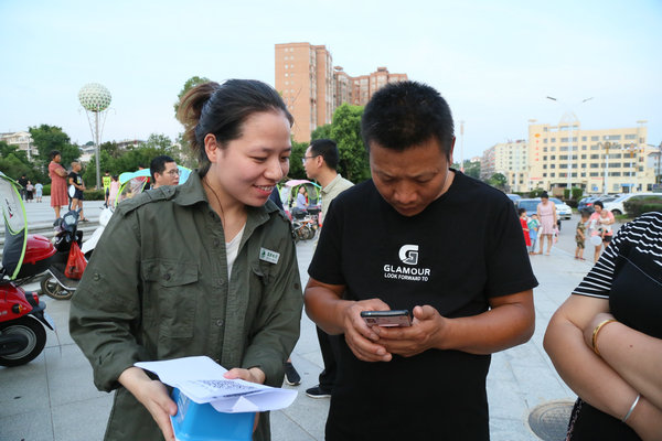 中國電力網(wǎng)訊 “大叔您看,只需下載網(wǎng)上國網(wǎng)APP,綁定戶號(hào),就可以實(shí)時(shí)查詢電費(fèi)、繳費(fèi),現(xiàn)在繳費(fèi)還可以抽電費(fèi)紅包呢……”7月17日晚,國網(wǎng)樂安縣供電公司青年志愿者在縣城四九廣場(chǎng)擺開攤位,開展“網(wǎng)上國網(wǎng)”宣傳推廣活動(dòng)。
