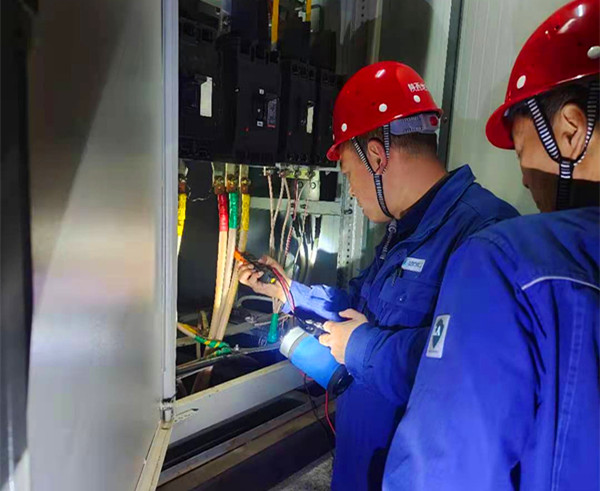 中國電力網(wǎng)訊 3月26日晚,朦朧夜色中,一群頭戴安全帽,身穿藍(lán)色地電工裝的人員出現(xiàn)在城南專變客戶的計(jì)量裝置旁邊,在強(qiáng)手電光的照耀下,大家相互配合、緊密協(xié)作,檢查每根接線,用鉗型電流表測量電流,做好相關(guān)記錄......。