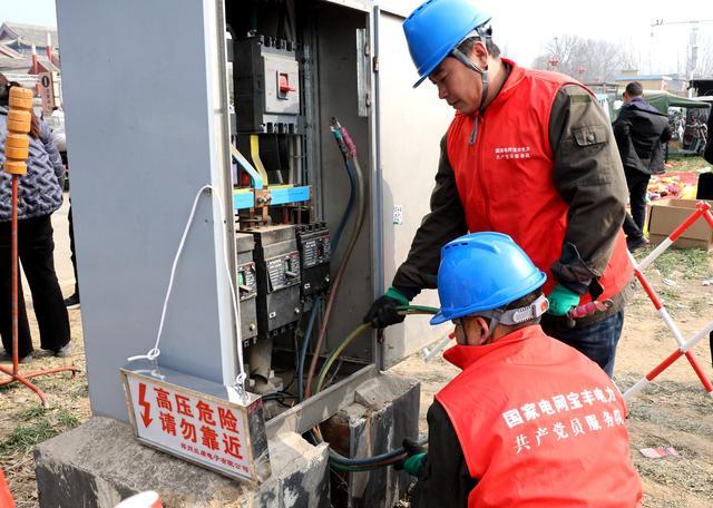 2月19日,國網(wǎng)寶豐縣供電公司楊莊中心供電所、營銷部青年突擊隊等人員提前來到寶豐縣楊莊鎮(zhèn)馬街村“馬街書會”現(xiàn)場,為“擺攤設點”的商戶排查用電隱患、講解安全電知識,全力為馬街書會期間安全可靠供電護航。