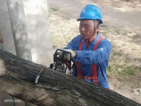 高頻次的爬上爬下,他們的衣背愈發(fā)潮濕,他們在這些“機器”的伴奏聲中“浴血奮戰(zhàn)”,看著一棵棵“攔路虎”倒了下來,一樁樁供電隱患被消除在眼前,他們才欣慰的擦了把滿臉的汗水。