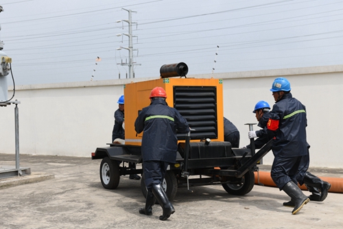 針對今年東??h域雨水增多、氣候變化頻繁,本次防汛演練以東??h域突降暴雨為背景,110千伏濱河變模擬暴雨后排水系統(tǒng)排水不及,雨水經(jīng)過電纜溝倒灌進(jìn)變電站,綜合檢驗多部門協(xié)同合作,出現(xiàn)汛情時運維人員的防汛對應(yīng)能力。