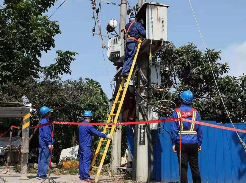 7月31日,國網(wǎng)南充市高坪供電公司工作人員對10千伏東岸線梧桐閣臺變及JP柜故障緊急搶修。(茍中華 攝)