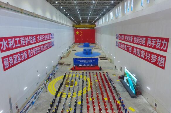大藤峽水利樞紐工程是國(guó)務(wù)院確定的172項(xiàng)節(jié)水供水重大水利工程的標(biāo)志性工程,集防洪、航運(yùn)、發(fā)電、水資源配置、灌溉等綜合效益于一體,是珠江流域關(guān)鍵控制性水利樞紐,被喻為珠江上的“三峽工程”。電站總裝機(jī)容量160萬千瓦,共安裝8臺(tái)單機(jī)容量20萬千瓦的水輪發(fā)電機(jī)組,左岸廠房3臺(tái),右岸廠房5臺(tái),為國(guó)內(nèi)最大的軸流轉(zhuǎn)漿式水輪發(fā)電機(jī)組。