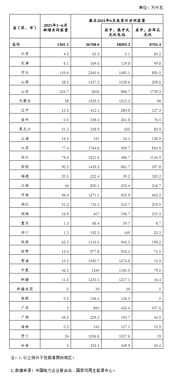 2021年上半年全國光伏發(fā)電建設(shè)運(yùn)行情況