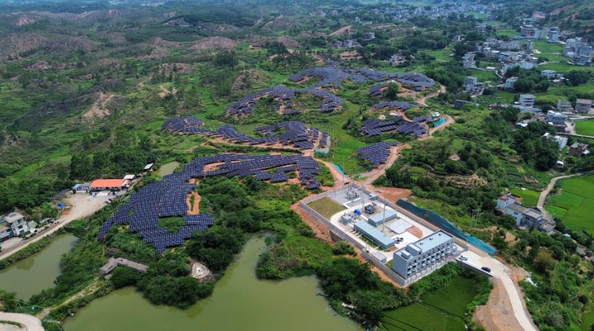 五華黃泥寨光伏項(xiàng)目是梅州市五華縣首個(gè)集中式大型光伏發(fā)電項(xiàng)目,總裝機(jī)容量70兆瓦,占地約1420畝,總投資約3.36億元。項(xiàng)目采用農(nóng)光互補(bǔ)模式,利用光伏板下種植農(nóng)作物及養(yǎng)殖雞、鴨等相結(jié)合,實(shí)現(xiàn)光伏發(fā)電與農(nóng)業(yè)創(chuàng)收雙贏,拓寬農(nóng)民增收渠道。該項(xiàng)目通過(guò)農(nóng)光互補(bǔ)模式,不僅有效利用土地資源,還能對(duì)項(xiàng)目建設(shè)地的水土保持、防風(fēng)固沙起到一定的保護(hù)作用。此外,通過(guò)植物腐爛后的再循環(huán)可以有效改善項(xiàng)目建設(shè)地的生態(tài)循環(huán)。