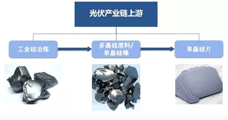 光伏產(chǎn)業(yè)鏈相對簡單,產(chǎn)業(yè)鏈上游主要是將半導(dǎo)體材料硅提煉成晶硅,中游廠商再將晶硅制作成電池片并生產(chǎn)相關(guān)的光伏組件,下游廠商則將電池片組裝成完整的發(fā)電系統(tǒng)并進(jìn)行維護(hù)和管理。