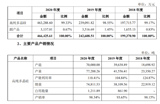 根據(jù)硅業(yè)分會數(shù)據(jù),2020 年度國內(nèi)多晶硅產(chǎn)量約為 39.6 萬噸,該公司對應(yīng)期間的多晶硅產(chǎn)量為 7.73 萬噸,占國內(nèi)多晶硅產(chǎn)量的 19.52%;2020 年度國內(nèi)單晶硅片用料產(chǎn)量為 32.6 萬噸,占國內(nèi)多晶硅產(chǎn)量的 82.4%,該公司在占據(jù)主流的單晶硅片用料的市占率為 22.68%。