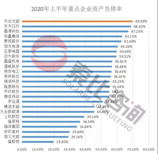 從資產負債率來看,索比咨詢統(tǒng)計的98家光伏企業(yè)總負債9103.98億元,平均負債率為49.8%,其中電站EPC企業(yè)的負債率最高,平均達到61.94%,*ST科林和*ST天龍面臨退市風險;上游企業(yè)負債率為56.15%,輔材企業(yè)負債率最低,平均負債率為34.49%。
