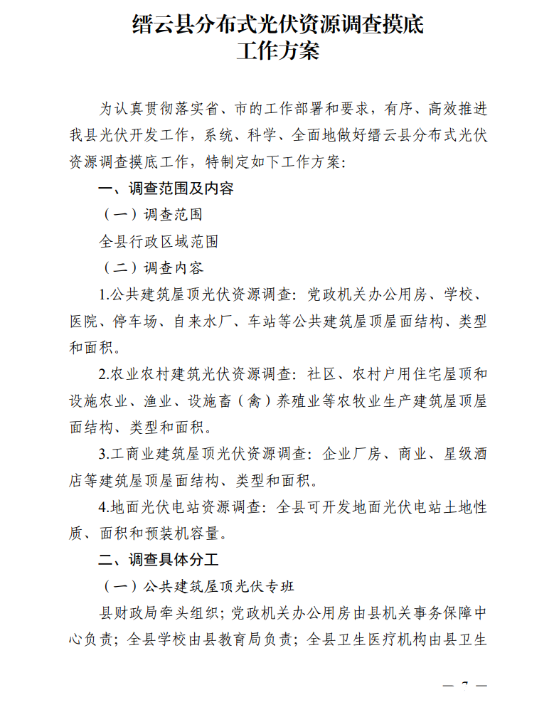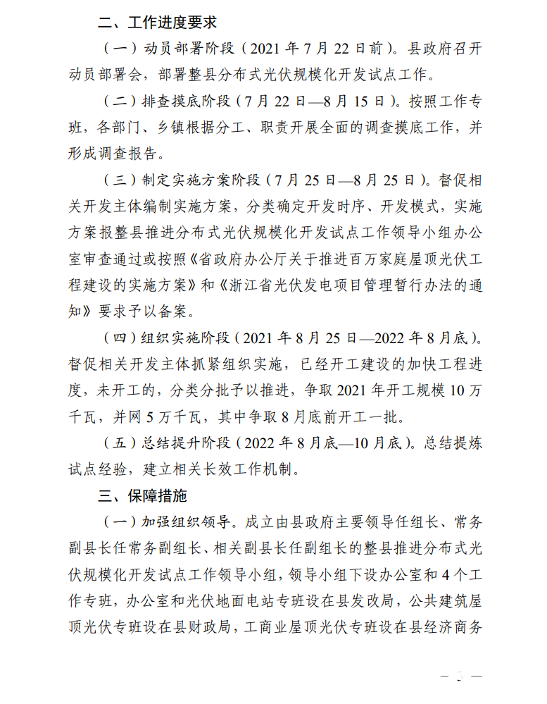 日前,縉云縣人民政府辦公室發(fā)布關(guān)于印發(fā)《縉云縣整縣推進分布式光伏規(guī)?;_發(fā)試點工作方案》《縉云縣分布式光伏資源調(diào)查摸底工作方案》的通知。通知明確,縉云縣整縣推進分布式光伏規(guī)?;_發(fā)試點工作目標任務(wù)為: