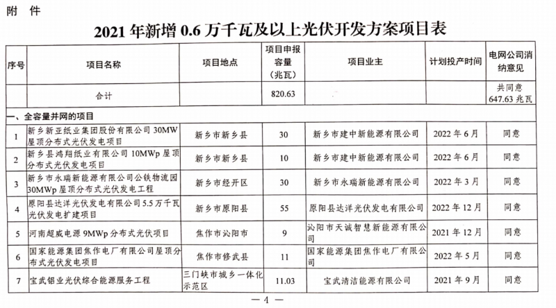 11月5日,河南省發(fā)改委下發(fā)《關(guān)于下達 2021年新增0.6萬千瓦及以上光伏項目開發(fā)方案的通知》。文件指出,對于不新增用地、利用固定建筑物及其附屬場所建設(shè)的光伏項目,不限申報規(guī)模!