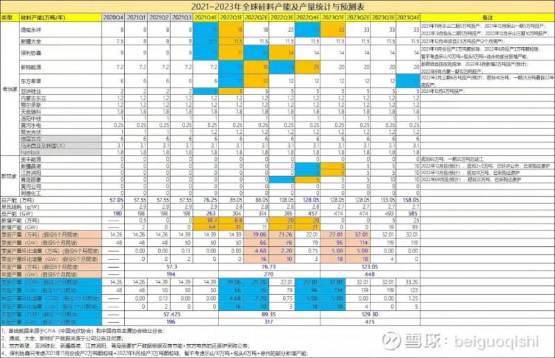 2022、2023年硅料產(chǎn)量預計分別為:83萬噸(76.73-89.35萬噸取中值)、126萬噸(123.05~129.3萬噸取中值,則2022、2023年硅料可支撐組件產(chǎn)量預計分別為:296GW、466GW,比2021年新增51%、137%,環(huán)比新增51%、57%,而中國光伏協(xié)會CPIA預測2022、2023年裝機中位值為205GW、240GW,乘以1.2容配比后對應組件需求:245GW、290GW,由此未來硅料價格走勢不言而喻了。