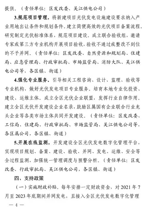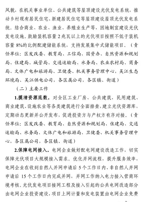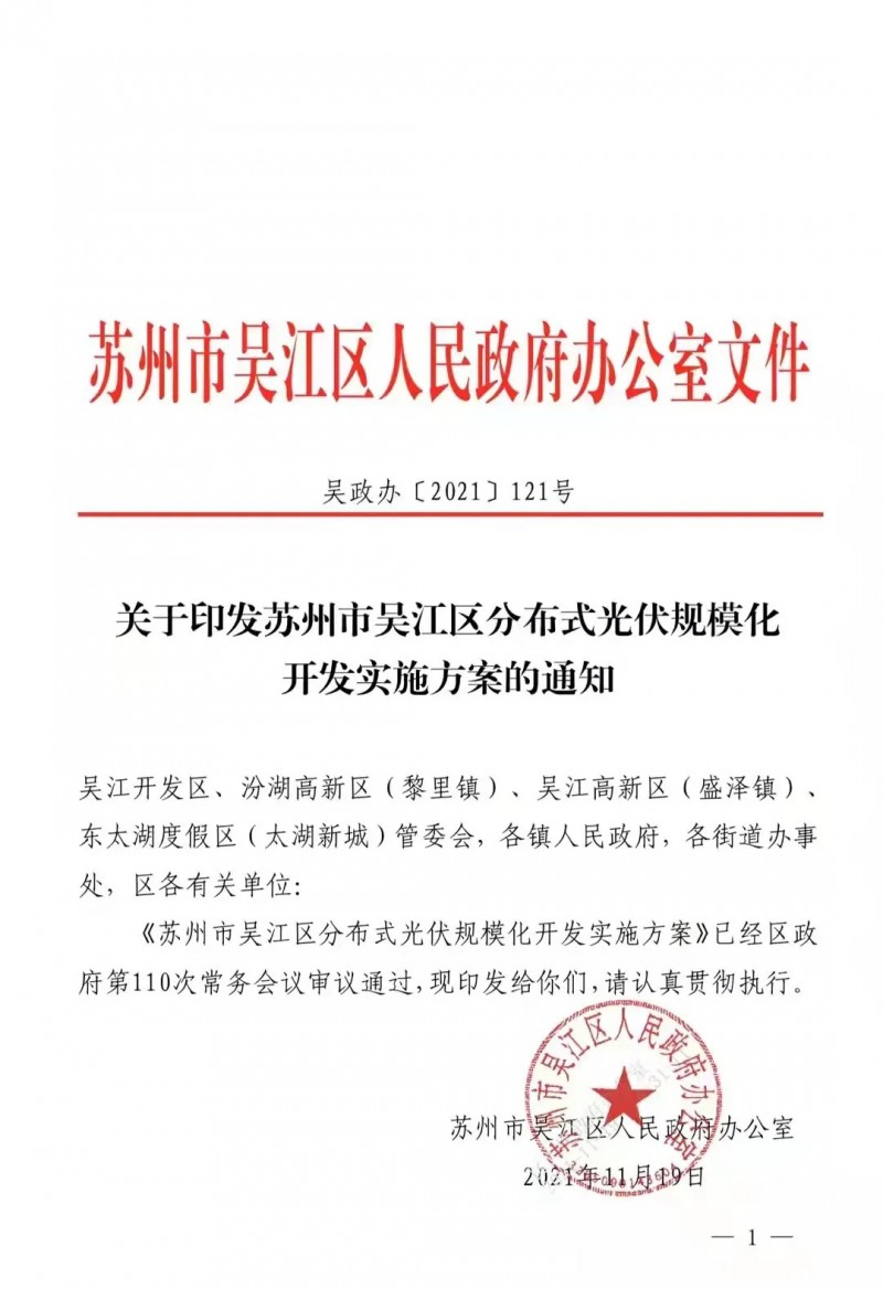 蘇州市吳江區(qū)人民政府發(fā)布印發(fā)吳江區(qū)分布式光伏規(guī)?;_(kāi)發(fā)實(shí)施方案的通知。