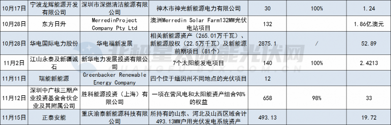 正泰之后,中廣核以658MW電站出售規(guī)模排名賣方市場(chǎng)第四。11月12日,新加坡勝科工業(yè)宣布已通過全資子公司勝科能源投資(上海)有限公司簽署股權(quán)購買協(xié)議,將以33億元收購深圳中廣核三期產(chǎn)業(yè)投資基金合伙企業(yè)及其附屬公司一項(xiàng)在營(yíng)風(fēng)電和太陽能資產(chǎn)組合98%的權(quán)益,涉及電站10個(gè),總裝機(jī)658MW。據(jù)了解,此次收購預(yù)計(jì)將于明年上半年完成。