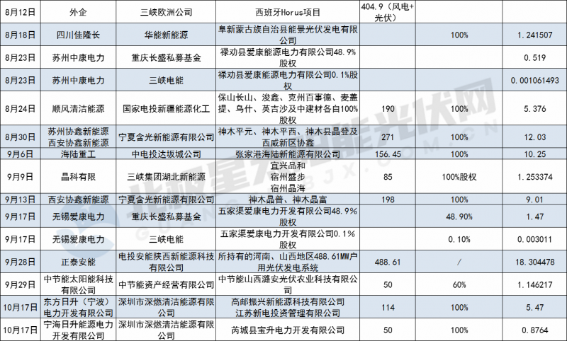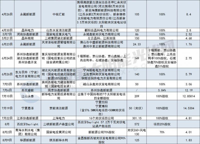 交易規(guī)模位列買方第二的是國家電投,年初至今,國家電投共進(jìn)行12起光伏電站交易,收購總規(guī)模達(dá)到2875.34MW,交易總額80.14億元以上。國家電投與協(xié)鑫新能源間今年再次完成713.15MW光伏電站資產(chǎn)買賣,占國家電投今年收購總量的25%,交易金額6.69億元。