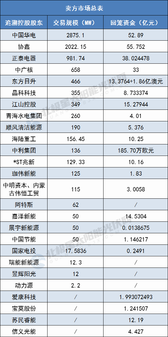 具體來看,華電集團(tuán)收購總量達(dá)2875.1MW,排名買方第一。10月28日,華電國際股份發(fā)布公告稱,公司及其若干附屬公司及分公司與福新發(fā)展及其若干附屬公司及分公司分別簽訂新能源股權(quán)出售協(xié)議、新能源資產(chǎn)出售協(xié)議及新能源前期項(xiàng)目轉(zhuǎn)讓協(xié)議,協(xié)議標(biāo)的涉及光伏、風(fēng)電電站資產(chǎn)超過2875.1MW,交易金額高達(dá)52.89億元。今年上半年,華電集團(tuán)宣布新能源資產(chǎn)重組完成,經(jīng)過兩批光伏、風(fēng)電資產(chǎn)重組工作,華電福新發(fā)展成為華電集團(tuán)唯一的新能源業(yè)務(wù)發(fā)展平臺(tái),同時(shí),華電集團(tuán)表示,“十四五”期間,華電集團(tuán)將以福新發(fā)展為平臺(tái)大力發(fā)展新能源,并將打造千億市值新能源航母。10月份華電國際股份與福新發(fā)展間的光伏電站交易不僅是華電“千億市值新能源航母”打造計(jì)劃的重要進(jìn)展,也讓華電成為了今年單筆交易規(guī)模最大的企業(yè)。