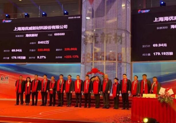 國(guó)內(nèi)光伏膠膜的領(lǐng)軍型企業(yè)---海優(yōu)新材在科創(chuàng)板正式上市。該公司今天開(kāi)盤價(jià)格為200元以上,截至發(fā)稿時(shí)報(bào)價(jià)為218元,漲幅為211.7%。這一漲幅在去年至今的所有新能源A股、科創(chuàng)板漲幅中非常之高。