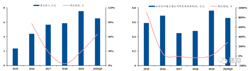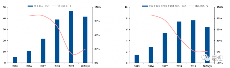 公司是光伏自動化組件設(shè)備的頭部供應(yīng)商,下游客戶涵蓋國內(nèi)多家知名光伏組件企業(yè),同時積極布局新型組件設(shè)備,向壁壘較高的電池設(shè)備領(lǐng)域延伸,探索新增長點。2015-2019 年,公司業(yè)績大幅增長,營業(yè)收入從 2.92 億元增長至 7.9 億元,CAGR 為 31.08%。截止 2020 年第三季度,公司的歸母凈利潤為 0.65 億元,同比增長 65%,超過 2019 年全年歸母凈利潤。合同負(fù)債已達(dá) 3.71 億元,為 2021 年業(yè)績奠定良好基礎(chǔ)。2019 年,光伏組件自動化生產(chǎn)線作為公司的主營業(yè)務(wù),占總營收的 93.11%,輔之以串焊機(jī)、層壓機(jī)等價值量較高的單機(jī)設(shè)備。