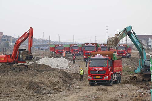 2月21日,工人們戴著口罩在工地上進(jìn)行作業(yè)、挖掘機(jī)忙著挖掘碎石和泥塊,渣土車(chē)來(lái)來(lái)往往清運(yùn)著石料……繁忙的景象打破了多日沉寂,由中國(guó)安能第二工程局常州分公司承建的新孟河延伸拓浚工程常州新北區(qū)河道八標(biāo)段正式復(fù)工。