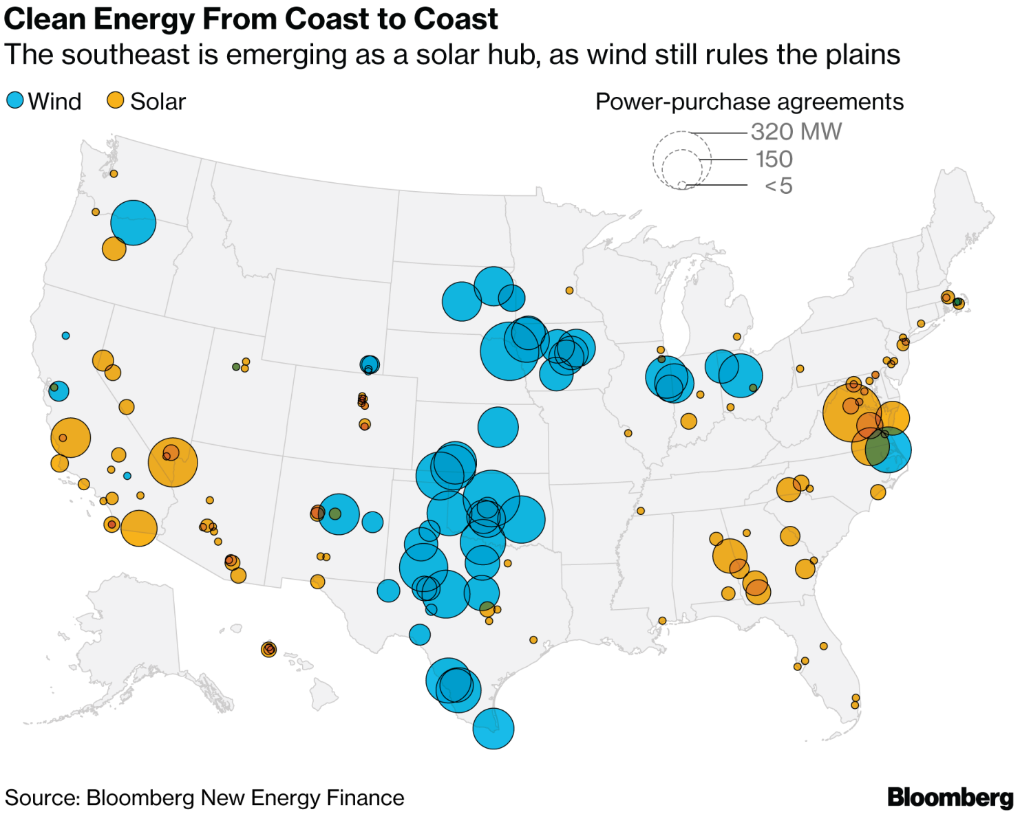 在美國(guó)簽署長(zhǎng)期合同購(gòu)買(mǎi)清潔能源的公司一般都在尋找風(fēng)力發(fā)電的中心地帶和沿海國(guó)家的太陽(yáng)能。