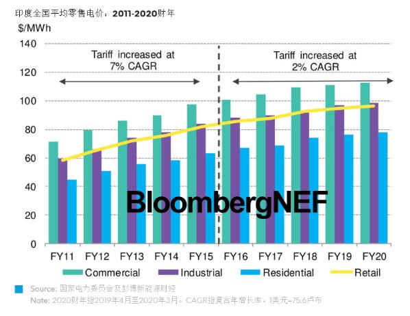 印度的商業(yè)電價(jià)是各類(lèi)電價(jià)中最高的, 商業(yè)電價(jià)平均達(dá)112美元/兆瓦時(shí),比居民電價(jià)和工業(yè)電價(jià)分別高44%和14%。