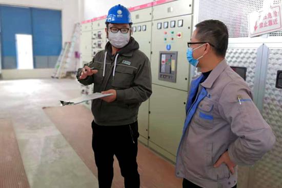 2月13日,在蕭縣丁里工業(yè)園,蕭縣供電公司副總經(jīng)理王海濤帶著營銷部負(fù)責(zé)人和供電所服務(wù)人員來到生產(chǎn)醫(yī)用防護(hù)口罩的華源家居用品公司,為該企業(yè)全面檢查用電設(shè)備、優(yōu)化保供電方案,設(shè)立常駐保供電客戶經(jīng)理,確保企業(yè)用電無憂。(馮巖 李令響)
