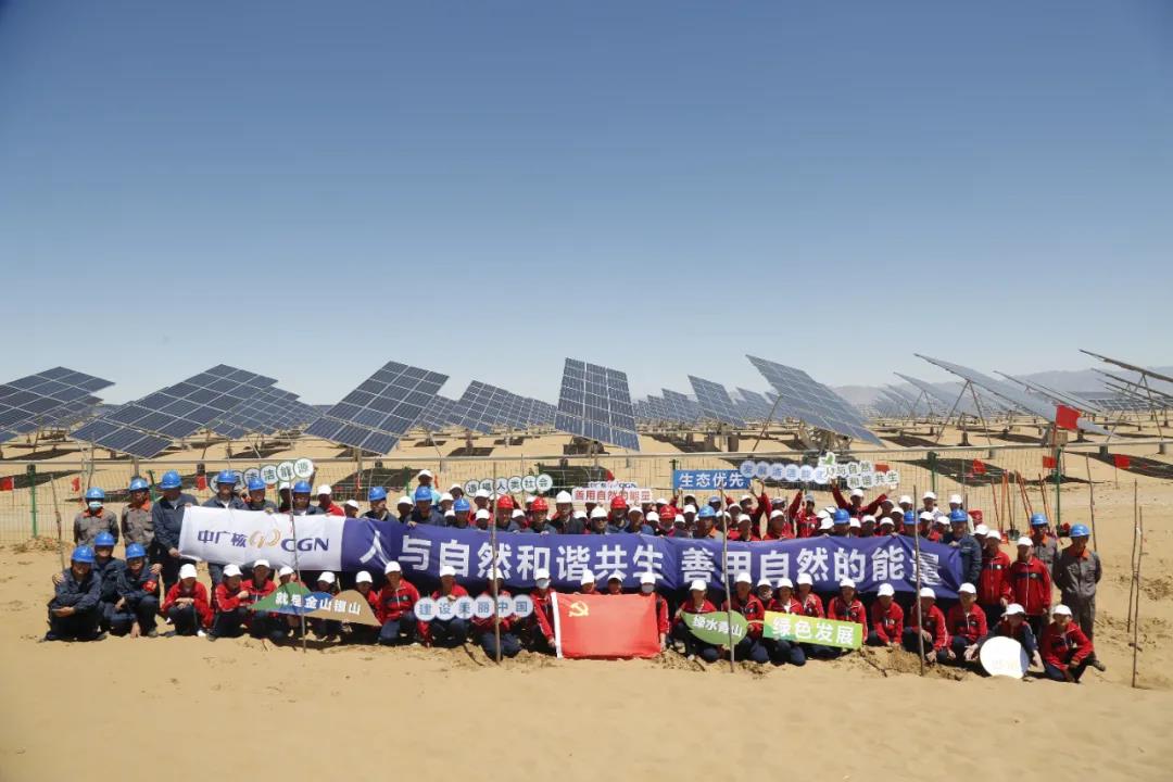 6月5日,第50個(gè)世界環(huán)境日之際,中國(guó)廣核集團(tuán)(簡(jiǎn)稱中廣核)在內(nèi)蒙古庫(kù)布其沙漠朔方光伏電站組織開(kāi)展“百人植樹(shù)”活動(dòng)。兩年多以來(lái),通過(guò)“板上發(fā)電、板下種植、板間養(yǎng)殖”的立體化新型產(chǎn)業(yè)循環(huán)方案,中廣核已在庫(kù)布其沙漠實(shí)現(xiàn)有效治沙2.7萬(wàn)畝。