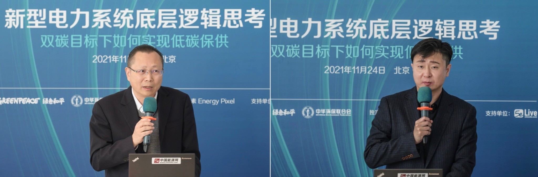 左:電力規(guī)劃設計總院高級顧問徐小東,右:綠色和平東亞項目副總監(jiān)張凱