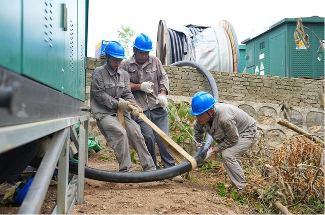 國網(wǎng)湖南岳陽供電公司員工在團西排水點開展抽排水臨時電源施工。