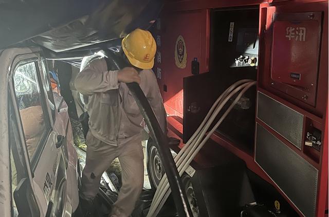 國網(wǎng)湖南岳陽供電公司員工為團西排水點排澇泵車接入低壓電纜。