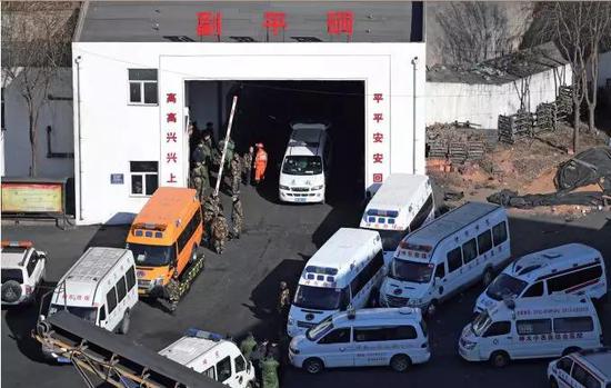 百吉礦業(yè)李家溝煤礦,位于生產(chǎn)調(diào)度中心大樓旁的“副平硐”,礦工們平時(shí)就是從此處進(jìn)入礦井中作業(yè)。1 月13日, 事故發(fā)生后的井口,停滿了救援車輛。