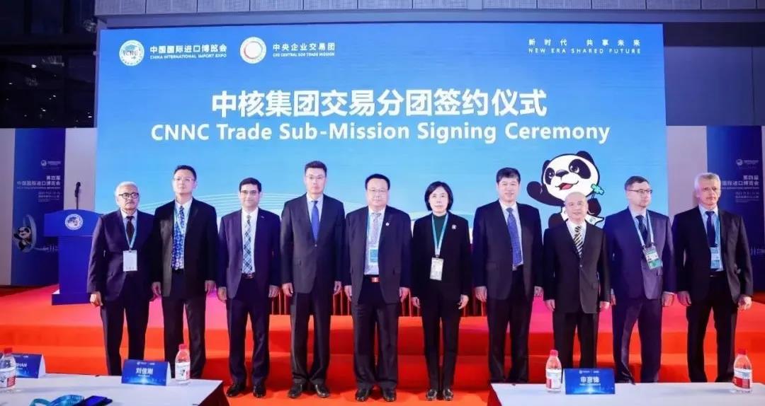 11月5日,第四屆中國(guó)國(guó)際進(jìn)口博覽會(huì)首日,中核集團(tuán)作為中央企業(yè)交易分團(tuán)首批舉行集中簽約儀式。中國(guó)原子能、中國(guó)鈾業(yè)、中核工程、江蘇核電等單位與俄羅斯、法國(guó)、美國(guó)、哈薩克斯坦等國(guó)家相關(guān)企業(yè),在核電運(yùn)維技術(shù)服務(wù)、核燃料組件零部件采購(gòu)等領(lǐng)域簽署合作協(xié)議。