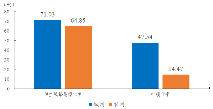 2022年,納入電力可靠性統(tǒng)計(jì)的10千伏用戶1241.01萬(wàn)戶,用戶總?cè)萘?8.90億千伏安。城網(wǎng)、農(nóng)網(wǎng)架空線路絕緣化率分別為71.03%、64.85%,城網(wǎng)、農(nóng)網(wǎng)電纜化率分別為47.54%、14.47%。